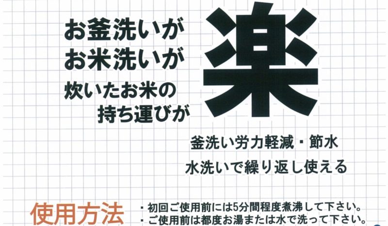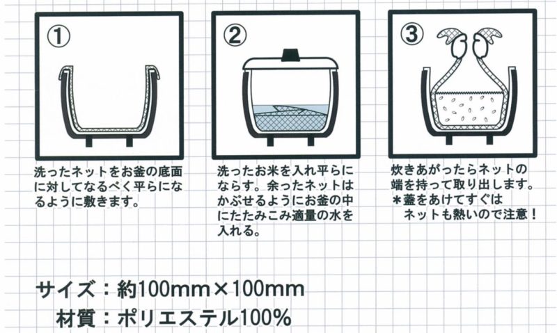 ご飯を炊くお店の味方。異物混入対策にブルーのご飯ネット。