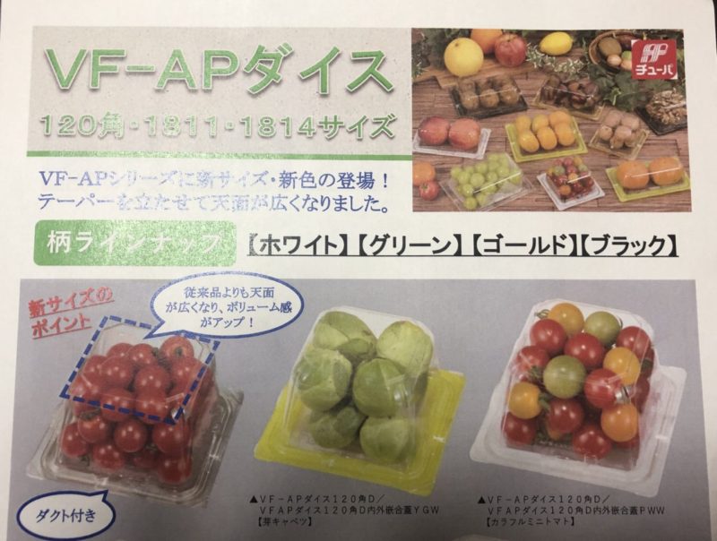 ブログ2019.09.30 2021.04.09 kobayashi フルーツを立体的に綺麗に見せる容器【VF−APダイス】 VF−APダイス 【ホワイト・グリーン・ゴールド・ブラック】 色・サイズも様々で、売り方のバリエーションが豊富。 立体的に見せて売り場に違いを。 VFダイスののご購入はこちらから