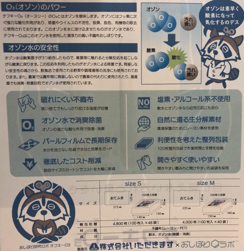 ブログ2019.10.04 kobayashi おしぼり革命 テフキーO3(オースリー) おしぼり テフキーO3(オースリー) 高洗浄率70% 手にしっとり軟水 アルコール・塩素系 不使用 生分解性素材(レーヨン テフキーO3(オースリー)はオゾン水を使用しています。 興味ある方は小林まで。