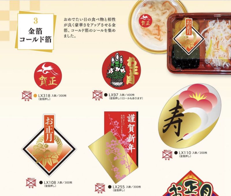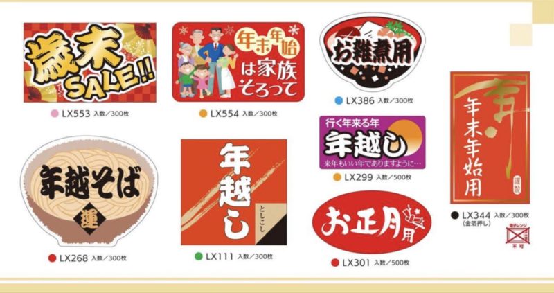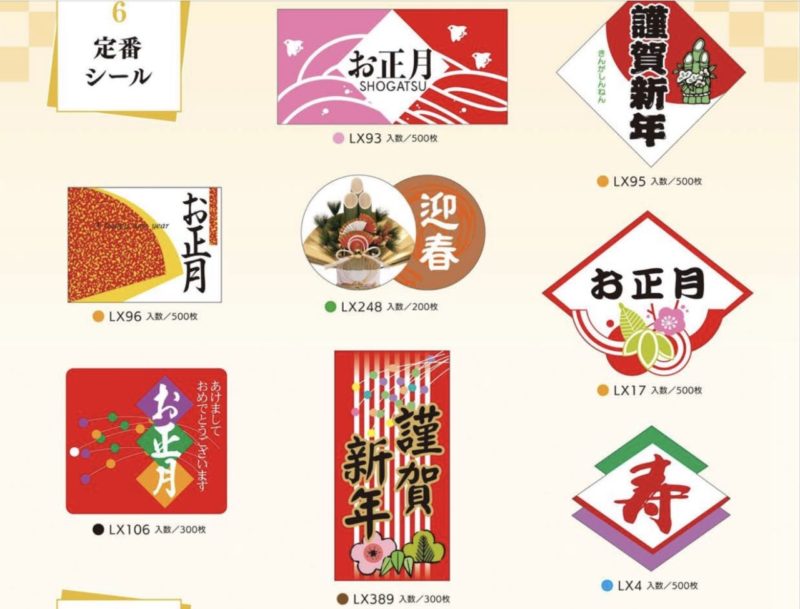 年末年始に様々な種類のシールの中からお選びください。