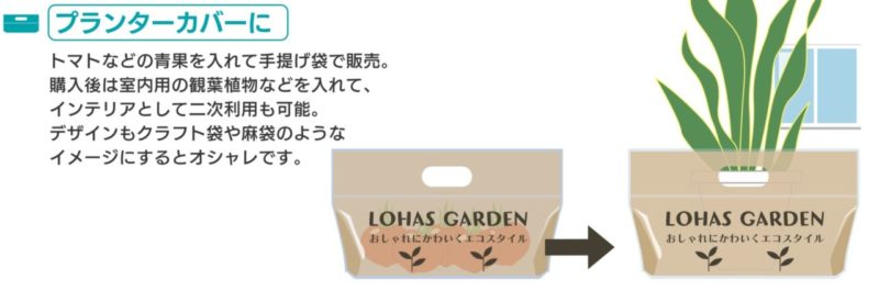 手持ち付きオリジナルデザインパック袋。様々な商品に活用できます。