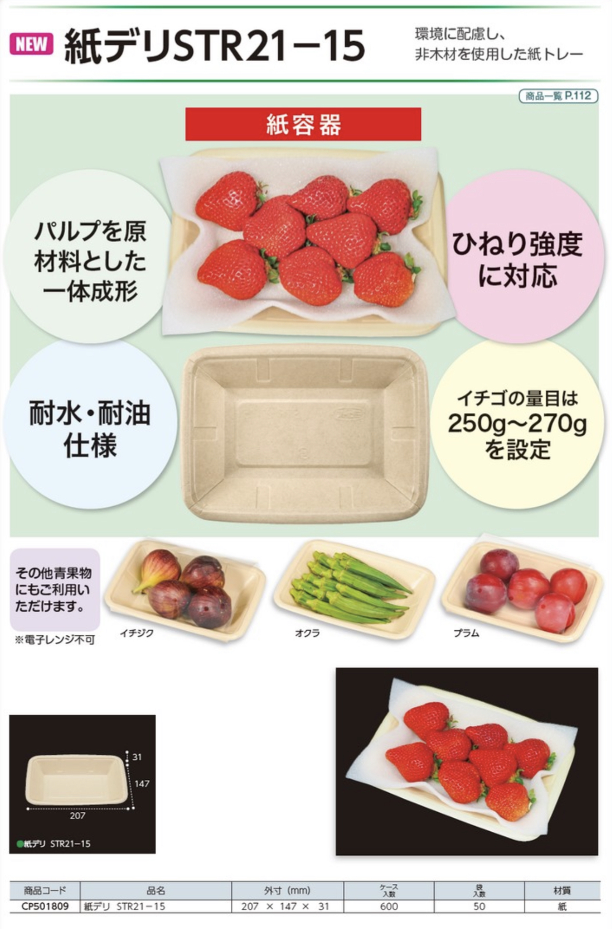 ブログ2022.02.02 kobayashi 環境に配慮した紙容器いちごトレーなどに【紙デリSTR21-15】のご紹介!!エフピコチューパ 環境に配慮した紙容器いちごトレーなどに【紙デリSTR21-15】のご紹介!!エフピコチューパ 注目の紙トレー。いちご250g〜270gの容量になります。 お問い合わせお待ちしております。お問い合わせフォームまで。