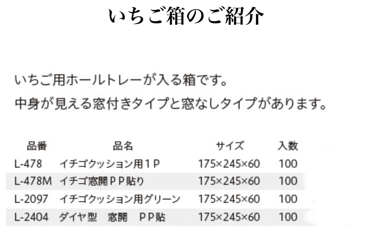 ブログ2023.02.01 kobayashi いちご箱のご紹介【L-478・L-478M・L-2097・L-2404】ヤマニパッケージ いちご箱のご紹介【L-478・L-478M・L-2097・L-2404】ヤマニパッケージ お問い合わせはお問合せフォームより。
