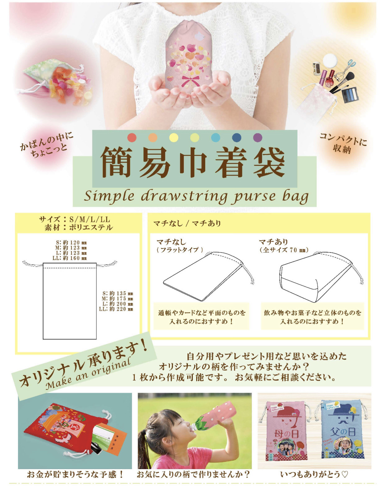オリジナル作成可能!!プレゼントなどに【簡易巾着袋】のご紹介!!