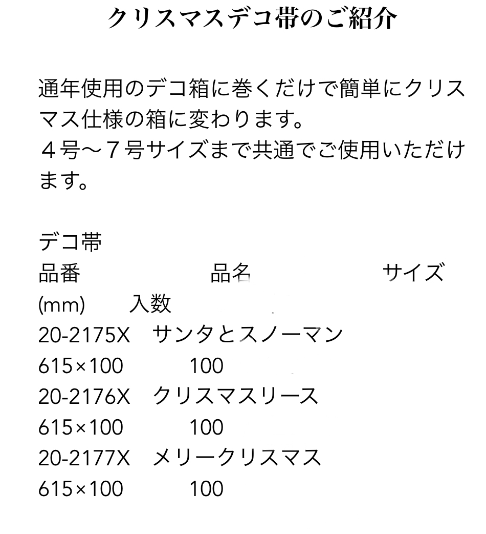 通年使用のデコ箱に巻くだけのクリスマス用【デコ帯】のご紹介!!ヤマニパッケージ